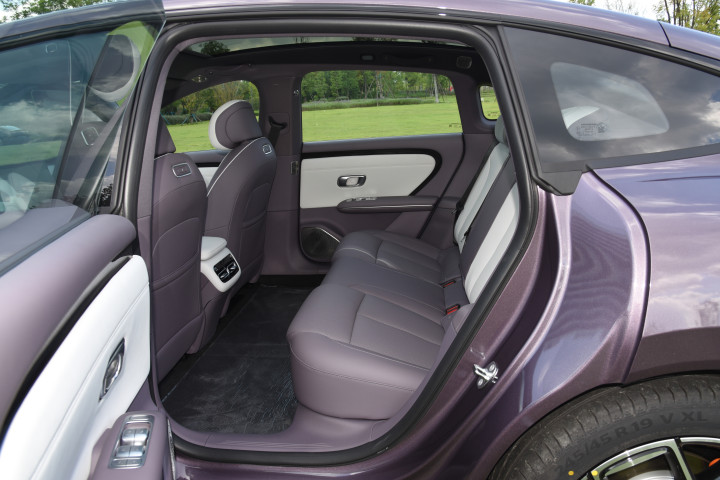 后排空间表现尤为出色,膝部空间达到两拳(约190mm),头部空间约一拳两指(约120mm),即使身高185cm的乘客也不会感到局促。后排地板采用纯平设计,中间乘客的脚部空间得到保证;配备的后排独立空调出风口和两个USB-C接口,进一步提升了后排乘客的舒适性。